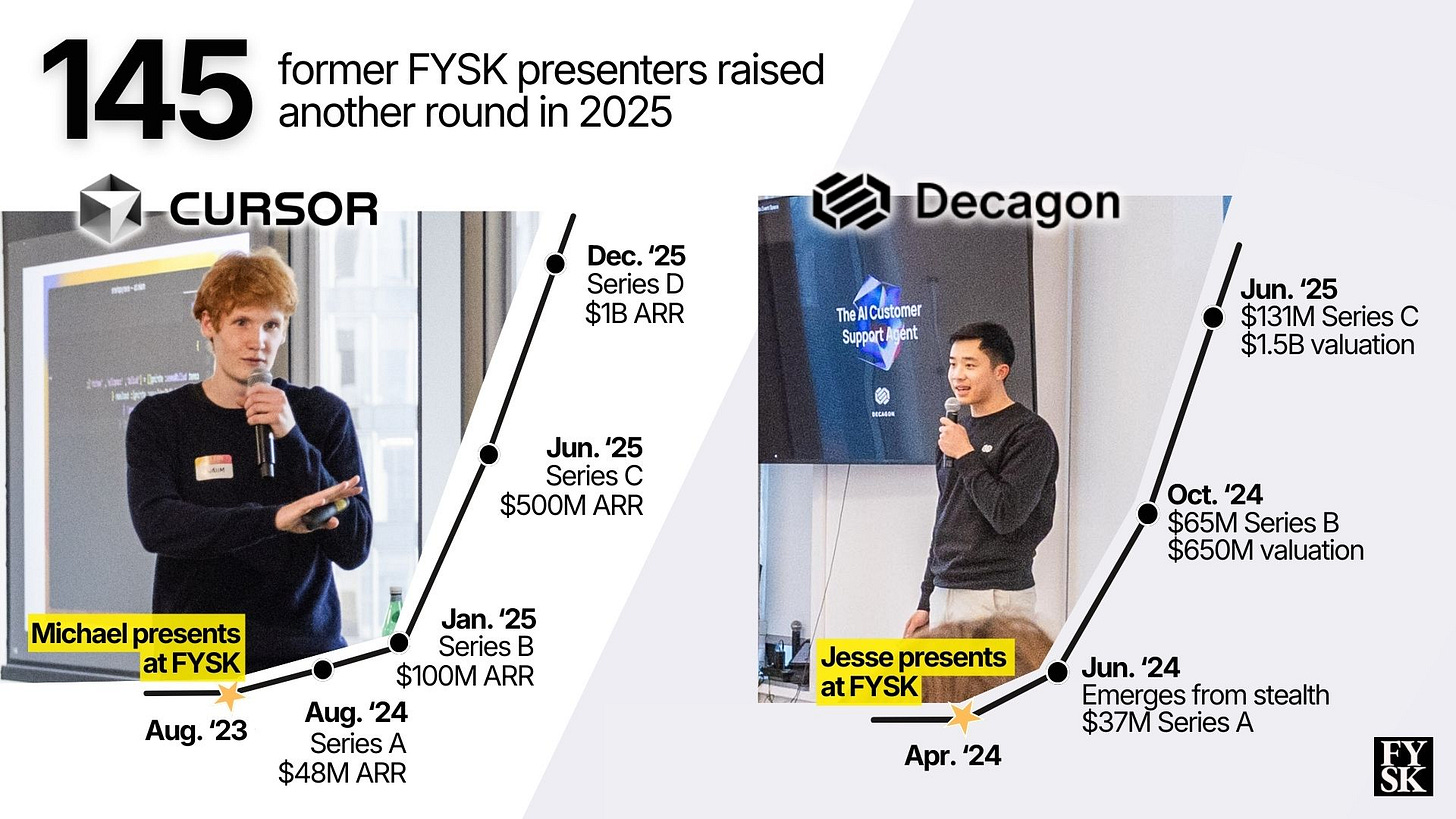 2025 was also a big year for previous showcase founders: 145 former FYSK presenters raised additional capital in 2025.
